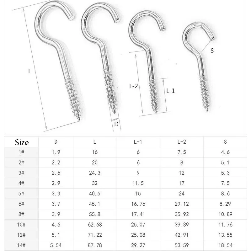 1# 2# 3# 4# 5# 6# 8# 10# 12# 14# Hook Self Tapping Wood Screws Question Mark Opening Sheep Eye Lamp Hook Screw Thumb Screw