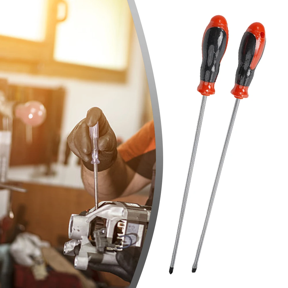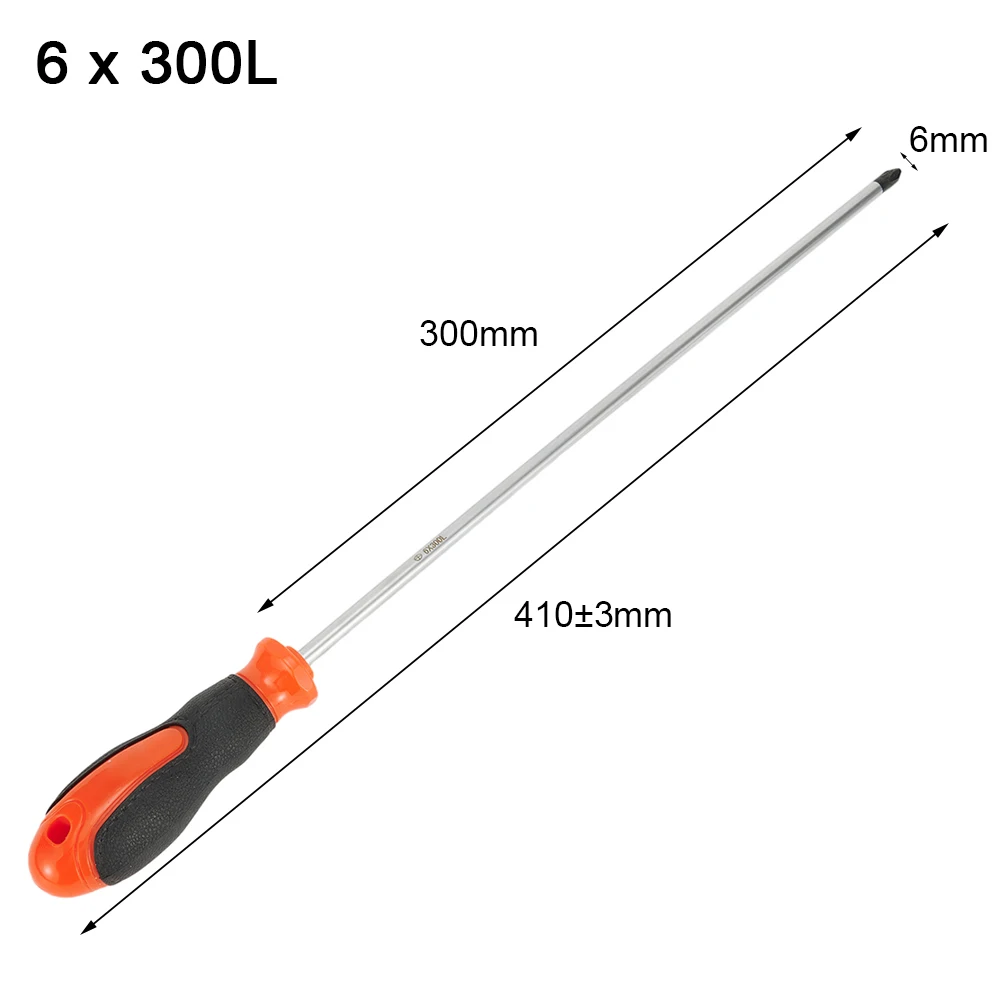 1/2pcs Extended Cross/Slotted Screwdriver 300mm 6mm Chromium Vanadium Alloy Steel Rubber Hand Tools Screwdriver Nutdrivers