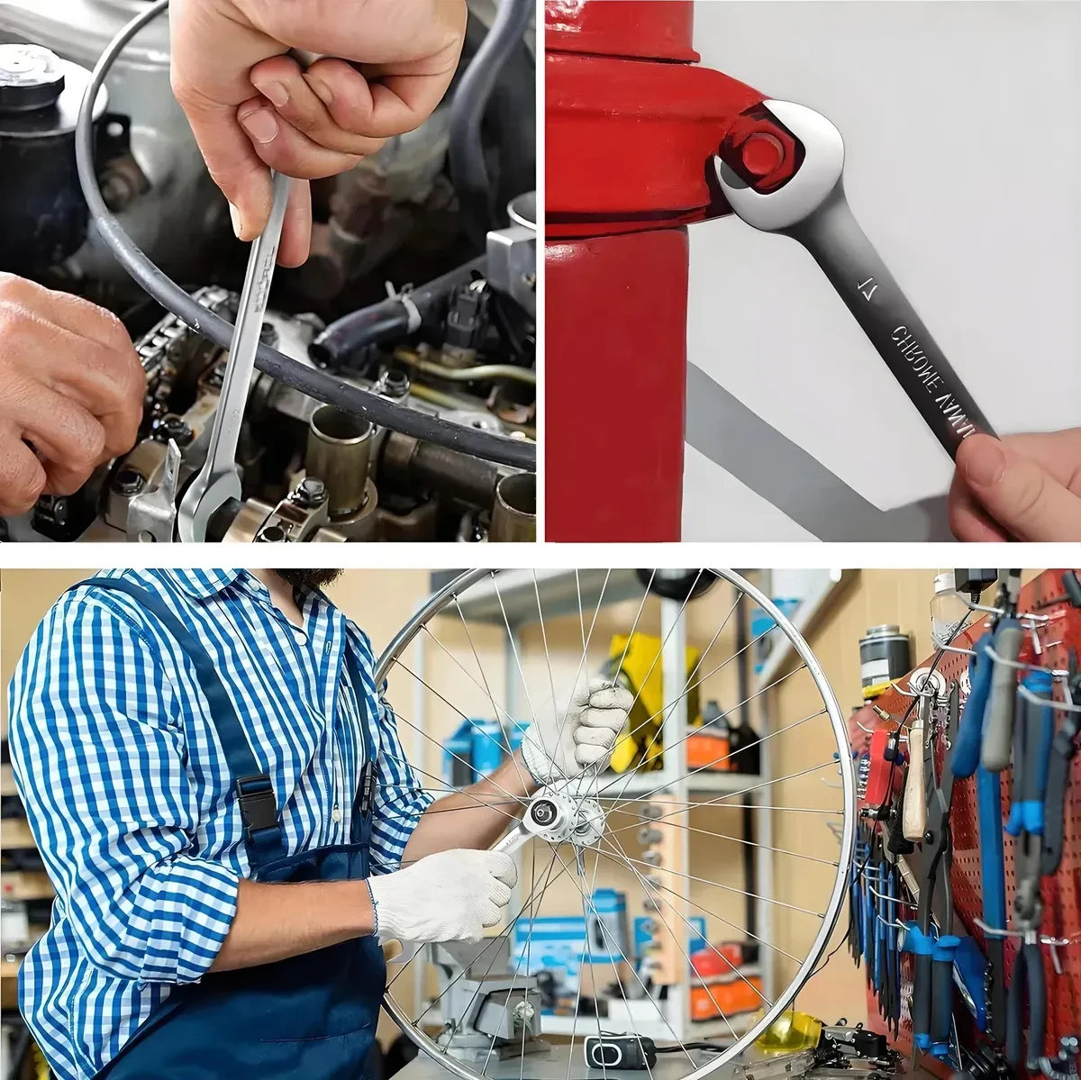 Multi-function spanner: suitable for car, motorbike and bicycle repair, as well as carpentry, household machinery, construction and other fields. Whether you are repairing cars, electrical appliances, furniture, or machinery, it will come in handy. With it, life will be more convenient and easy.