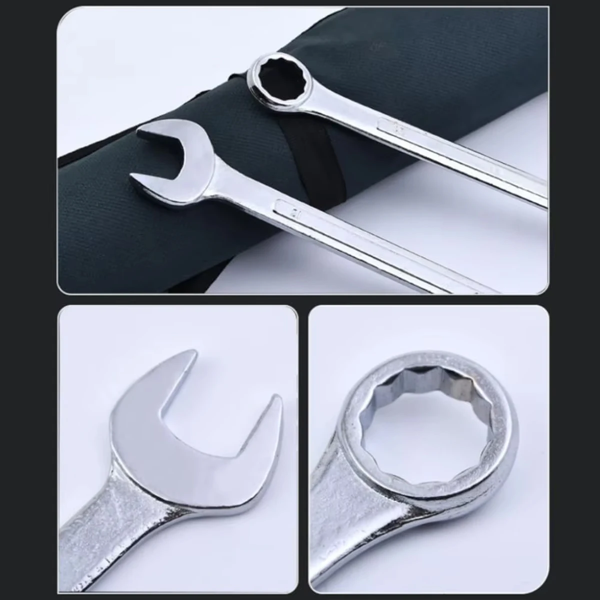 High-quality materials: This spanner set is made of industrial-grade chrome vanadium steel with a rust-resistant chrome-plated surface for superior strength and durability. With its scratch-resistant matte silver finish, it will look as good as new even after long-term use.