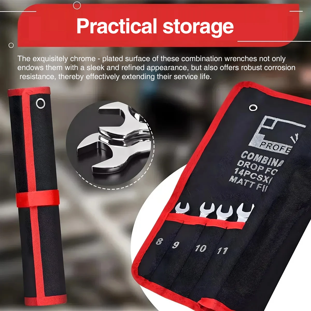High-quality materials: This spanner set is made of industrial-grade chrome vanadium steel with a rust-resistant chrome-plated surface for superior strength and durability. With its scratch-resistant matte silver finish, it will look as good as new even after long-term use.