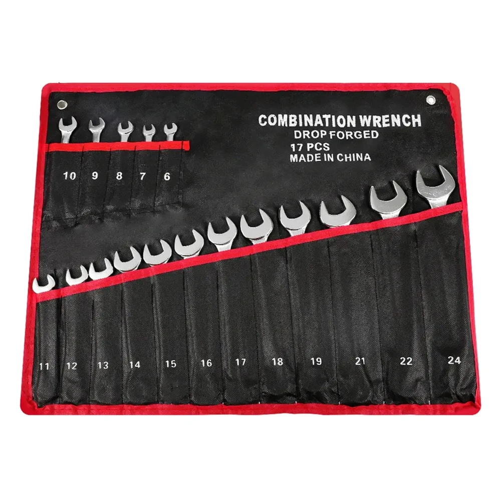 17 PCS Combination Spanner Set Open-ended and Ring Wrench for Car Hand Tools and Household Universal Wrench Repair Accessories