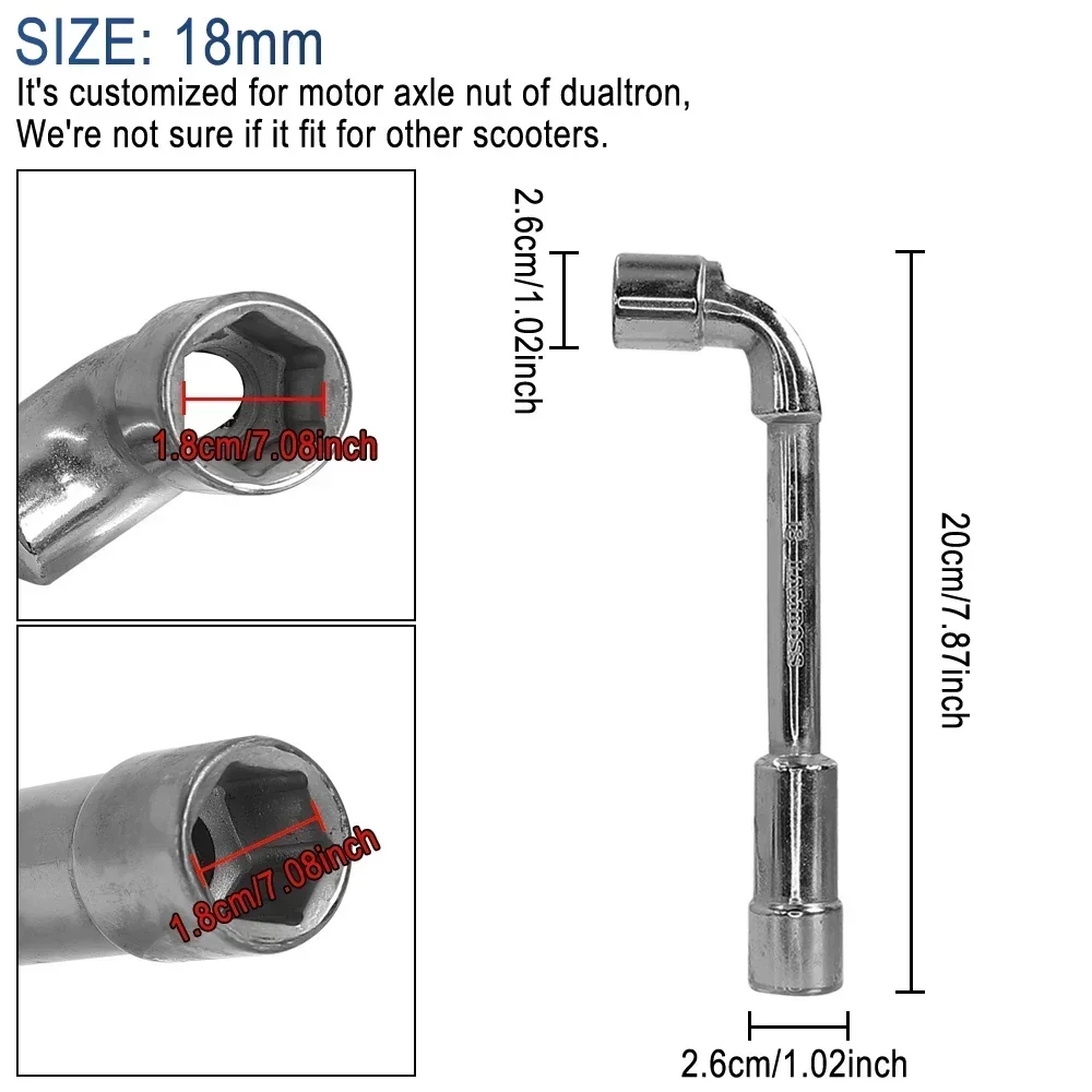 18mm Multi-purpose L-shaped Spanner Open Socket Wrench for DUALTRON Series Electric Scooter To Tighten or Loosen Motor Axle Nut