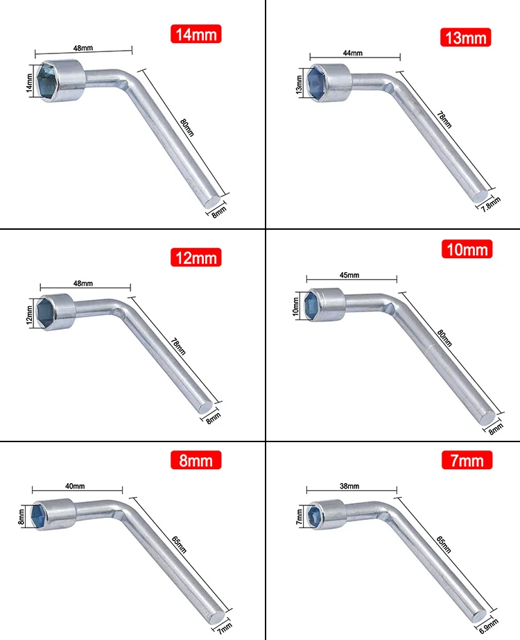 1pc Hexagonal L-shaped Screw Nut Wrench Sleeve Maintenance Tool 7mm 8mm 10mm 12mm 13mm 14mm Spanner