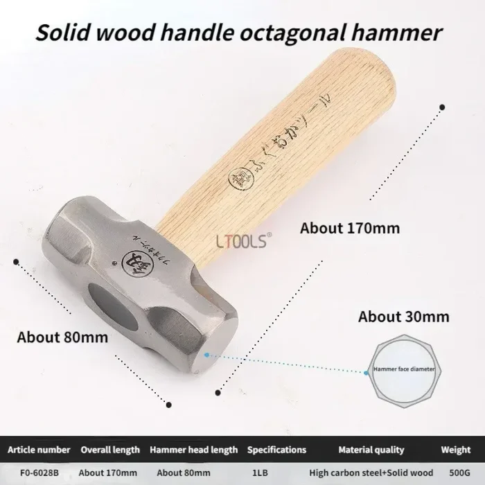 BAIHU Mini Hammer High Carbon Steel Hammer Solid Wood Short Handle Octagonal or Round Head Hammer Small Manual Hardware Tool