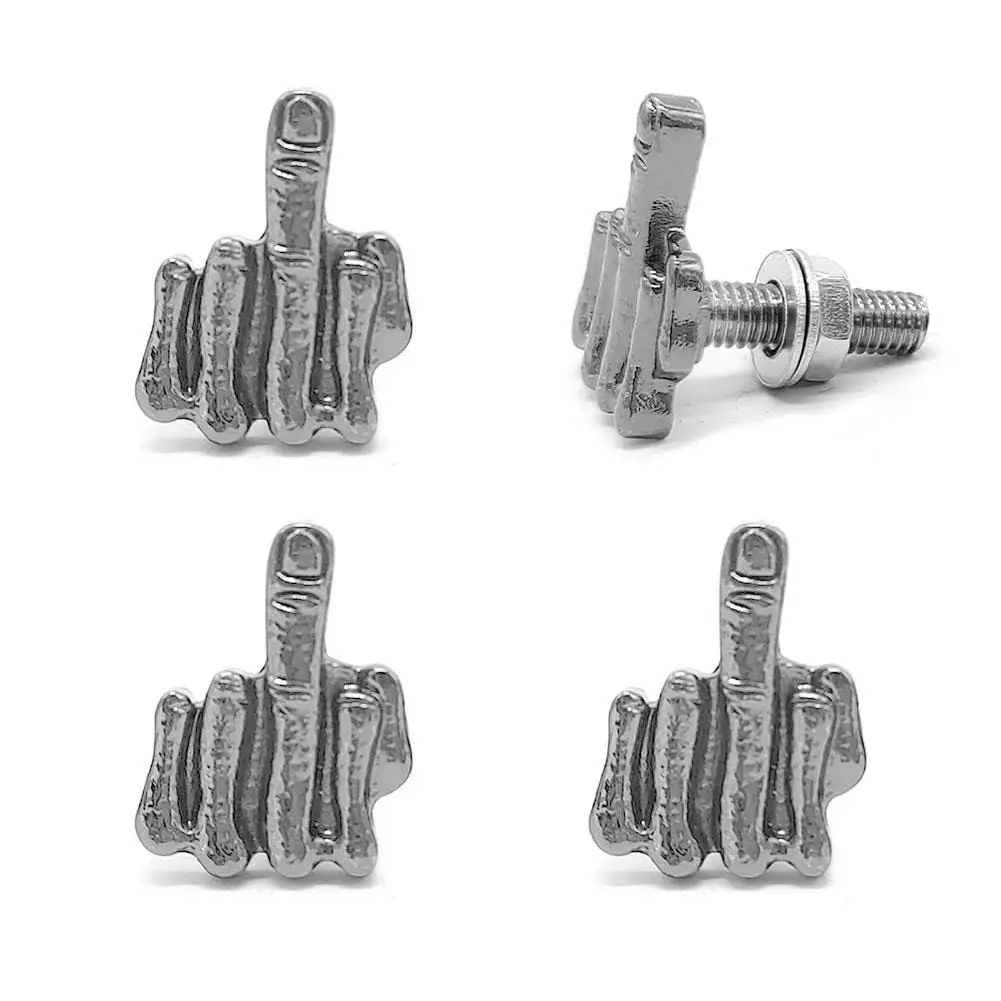 3D design Middle Finger bolts, entrust unique charm for your license frame. The punk style add personality to your car, especially make your motorcycle cooler and more stylish