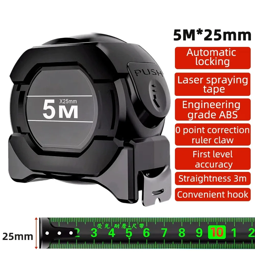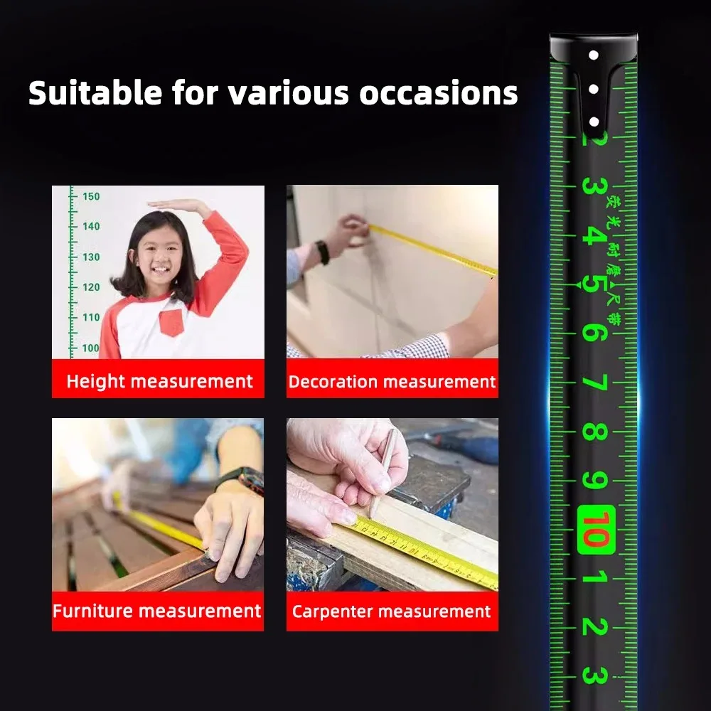 3/5/10M Metric Measuring Tape Self Locking Fluorescent Steel Tape Measure High Precision Wear-resistant Ruler Measuring Tools