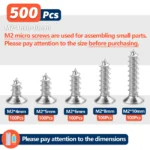 500pcs M2 Self Tapping Phillips Screws Assortment Kit 5 Sizes Alloy Steel Cross Drive Flat Head Self Drilling Wood Screws DIY