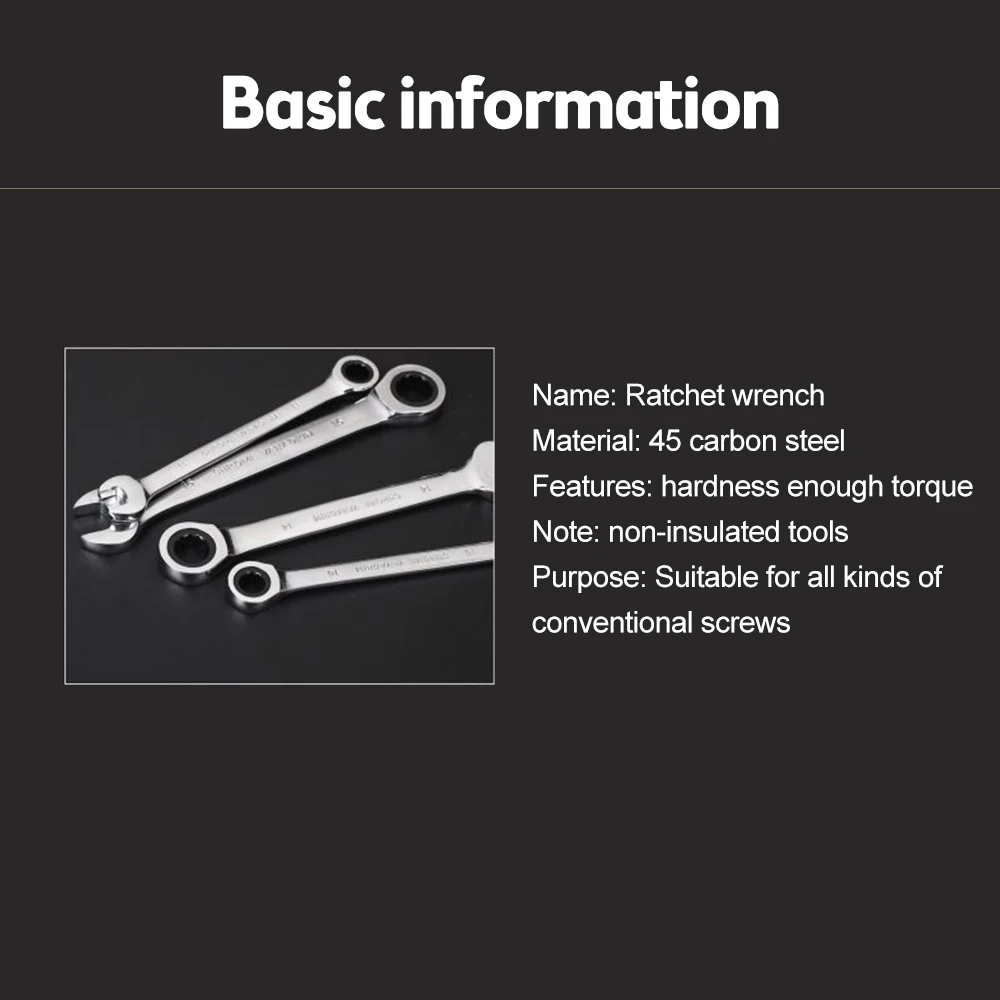 6/7/8/9/10/11/12/13/14/15/16/17mm Ratchet Spanner Combination Wrench Keys Gear Ring Tool Handle Chrome Vanadium Tool Wrenches
