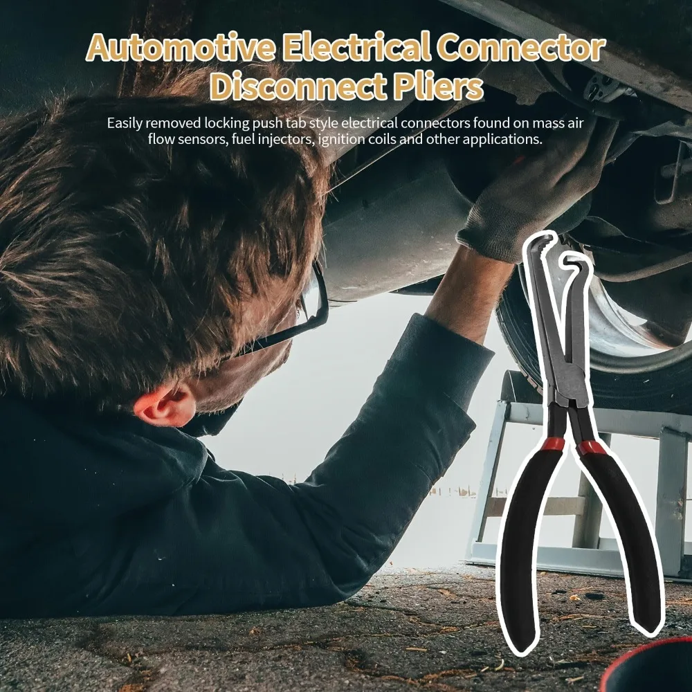 1.These appliance disconnect pliers are a must-have in your tool kit.Easily Removes Locking Push Tab Style Electrical Connectors Found on Mass Air Flow Sensors, Fuel Injectors, Ignition Coils and Other Applications.