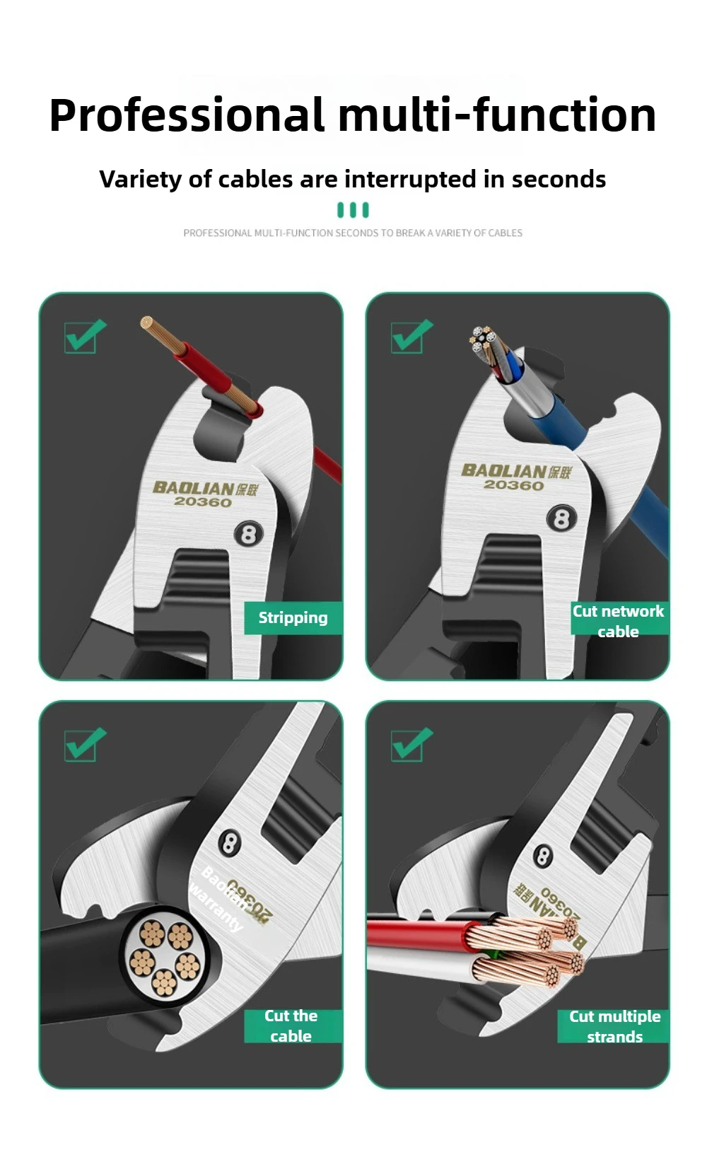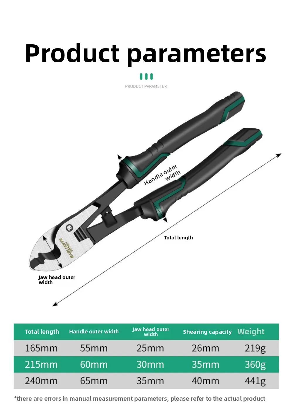 Cable Wire Bolt Cutters Stripping Breaker Cutting Crimping Professional Electrician Pliers Stripper Tools 6/8/10 Inch