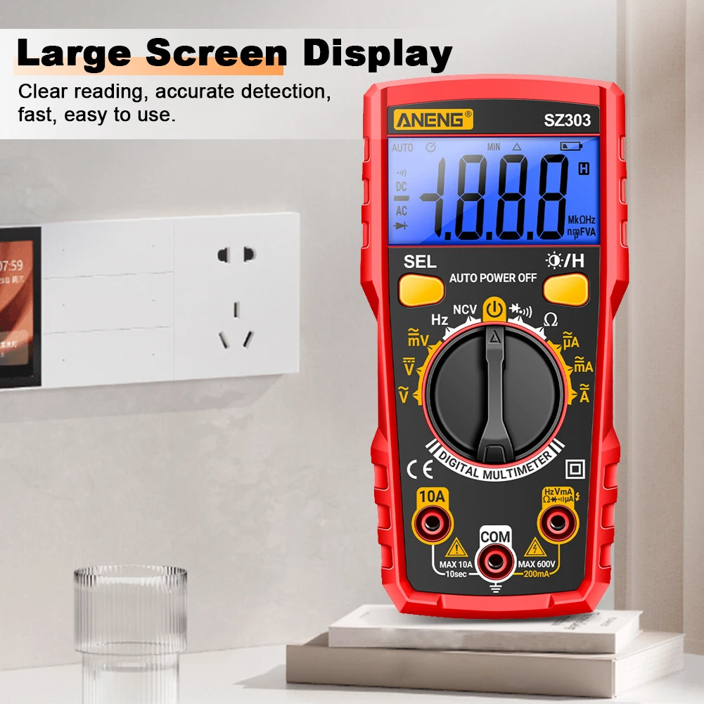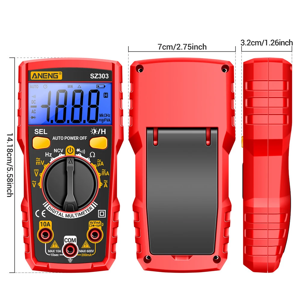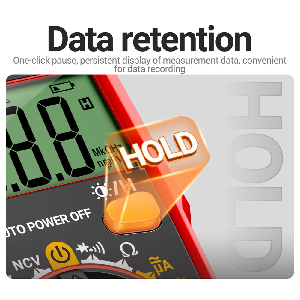 Feature:1. Handheld Digital Multimeter: This digital multimeter is a versatile, handheld device that offers multiple functionalities for various electrical measurements.