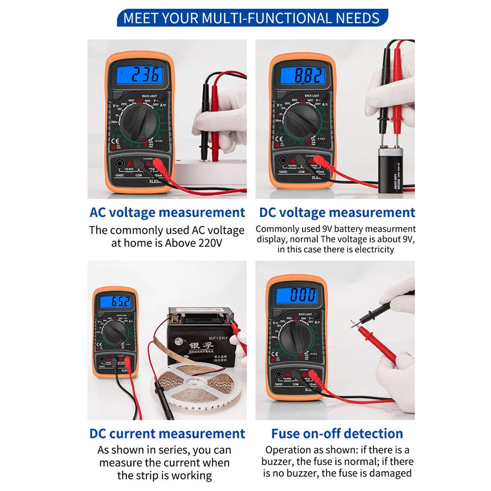 Digital Multimeter with LCD Backlight Accurately Test AC/DC Ammeter Voltmeter Ohm Voltage Tester Meter Multimetro