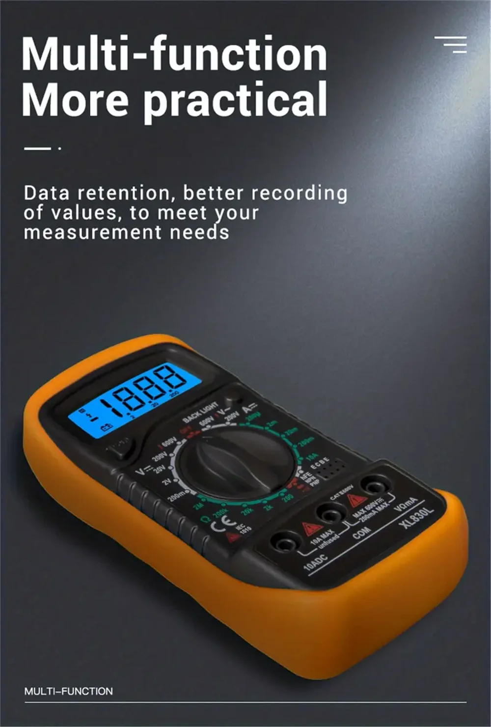 Easy to Control: the multimeter is convenient for single hand operation, function dial is precise and easy to switch.