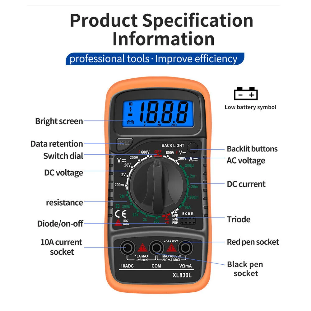 Multifunctional Tester: the small multimeter can measure DC voltage, AC voltage, DC current, resistance, triode, diode, etc.