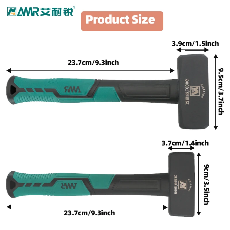 Drilling/Crack Hammer Masonry Hammer with Fiberglass Handle & No-Slip Cushion Grip 1000G 800G