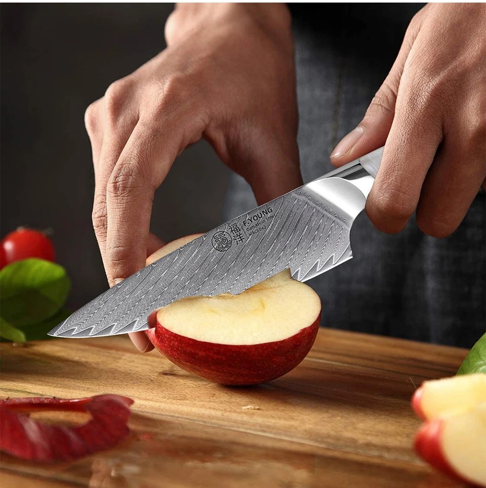 F.YOUNG 5.5″ Utility Knife Damascus Steel Japanese Chef Knife Cut Vegetable Meat Fruit Professional Kitchen Knives Cooking Tools