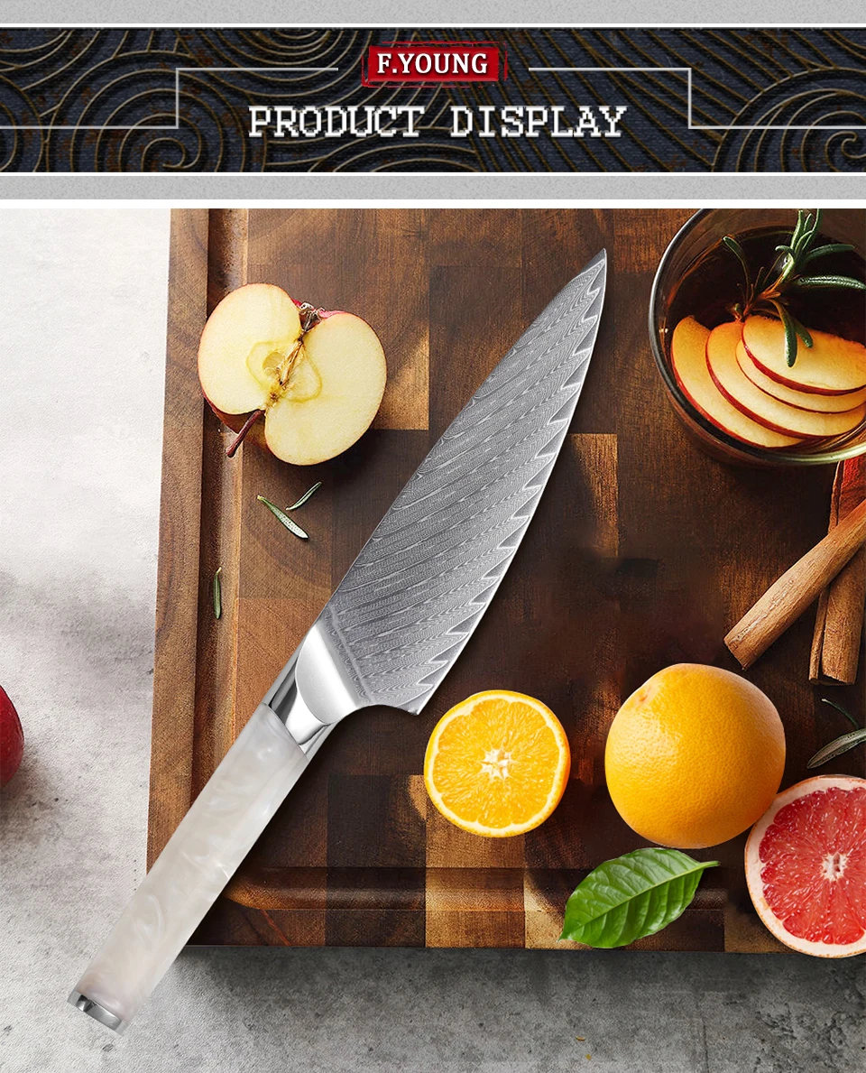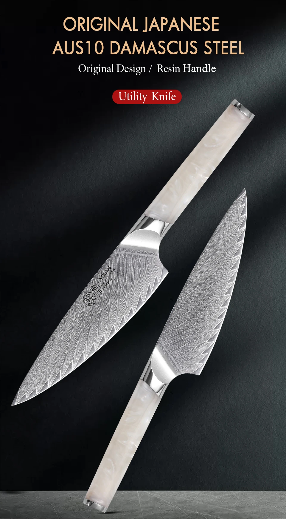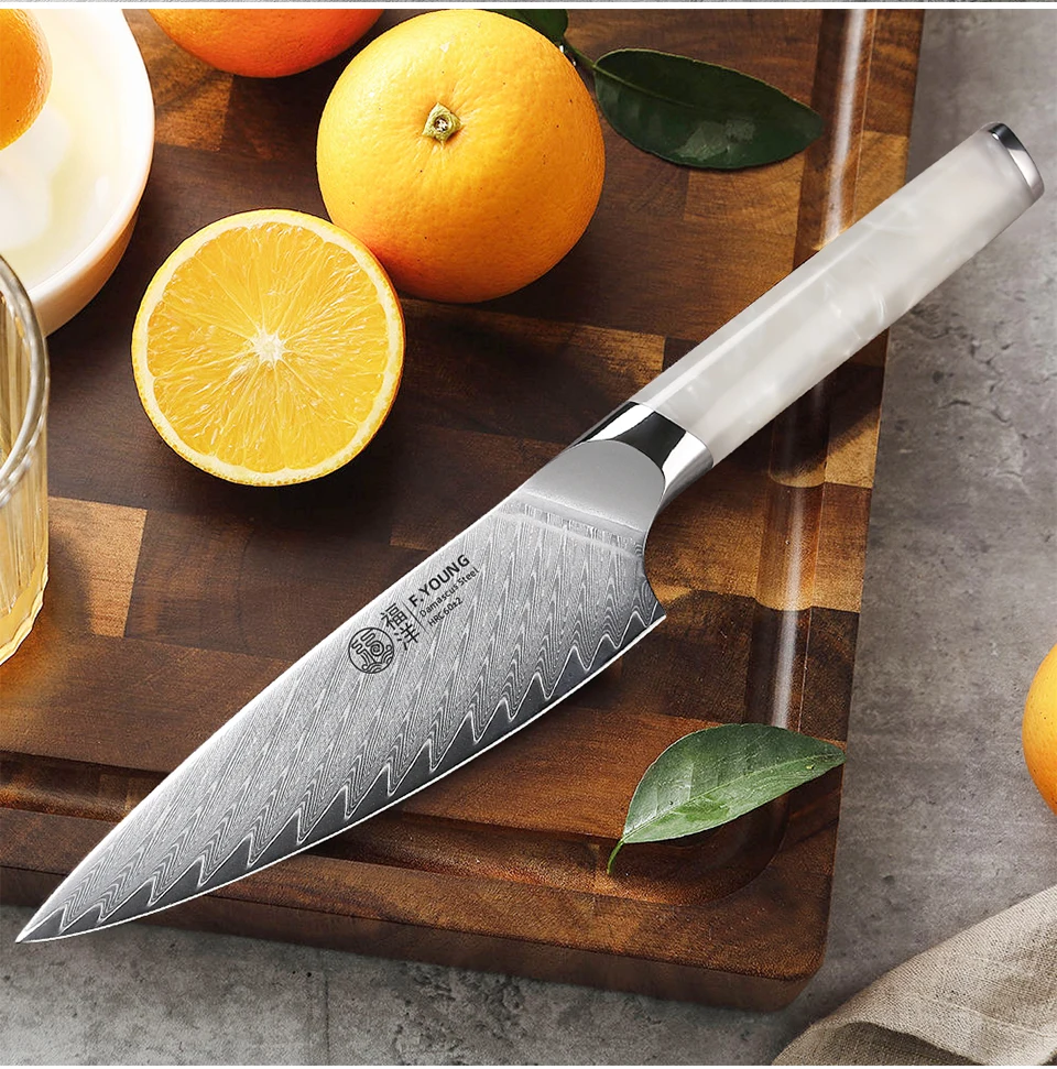 F.YOUNG 5.5" Utility Knife Damascus Steel Japanese Chef Knife Cut Vegetable Meat Fruit Professional Kitchen Knives Cooking Tools with Resin Handle