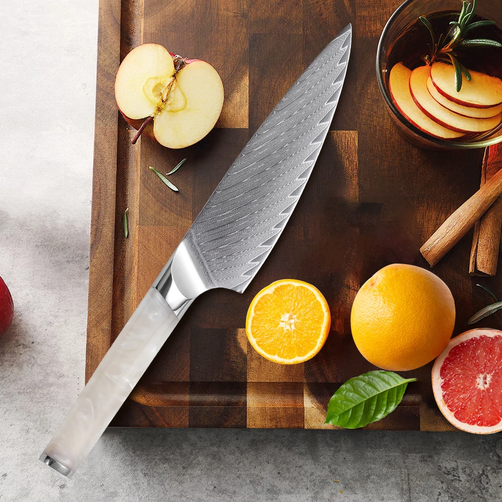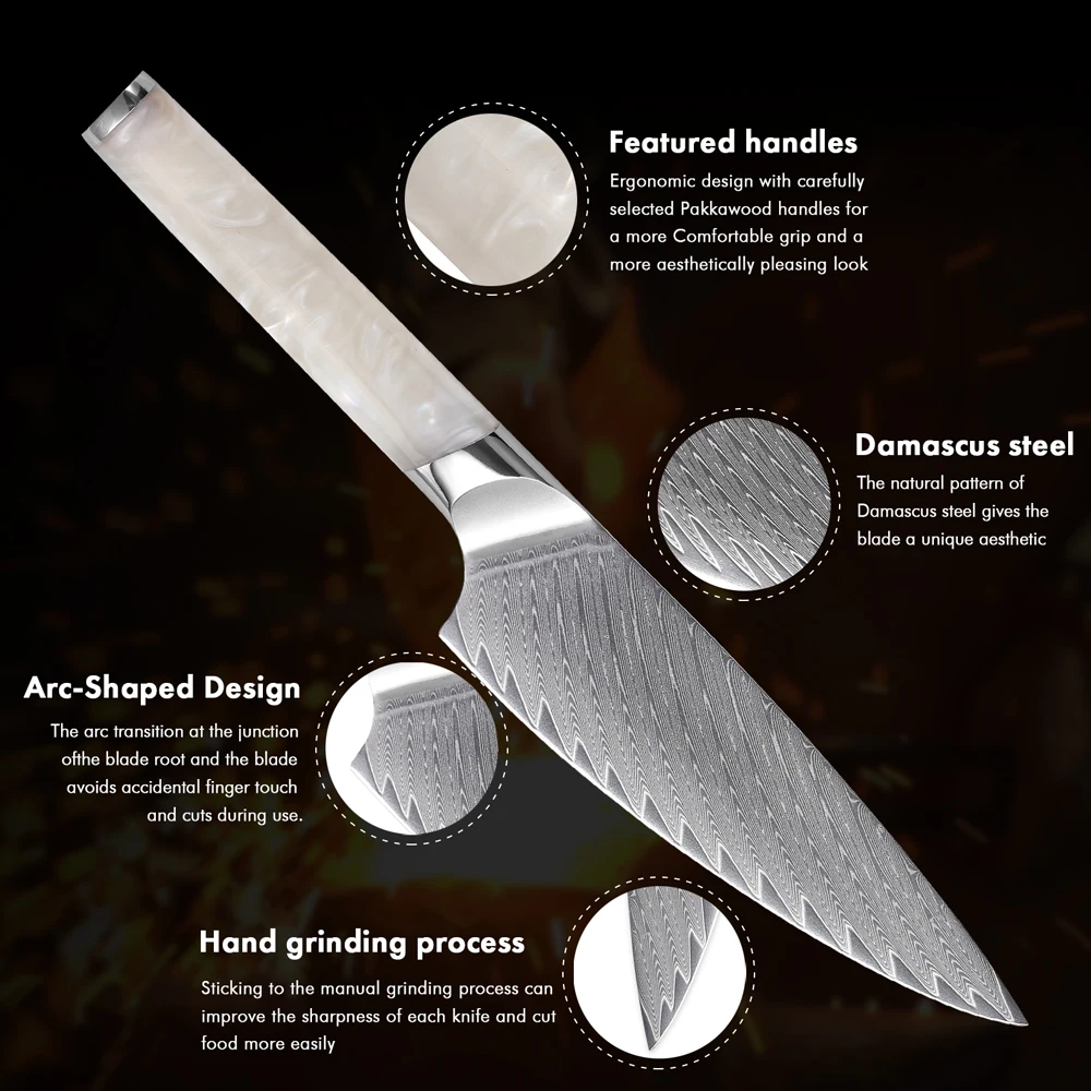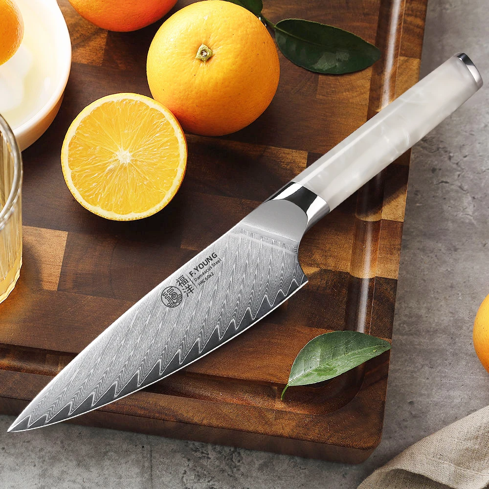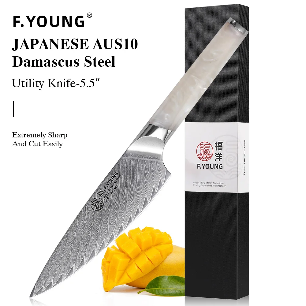 F.YOUNG 5.5" Utility Knife Damascus Steel Japanese Chef Knife Cut Vegetable Meat Fruit Professional Kitchen Knives Cooking Tools with Resin Handle