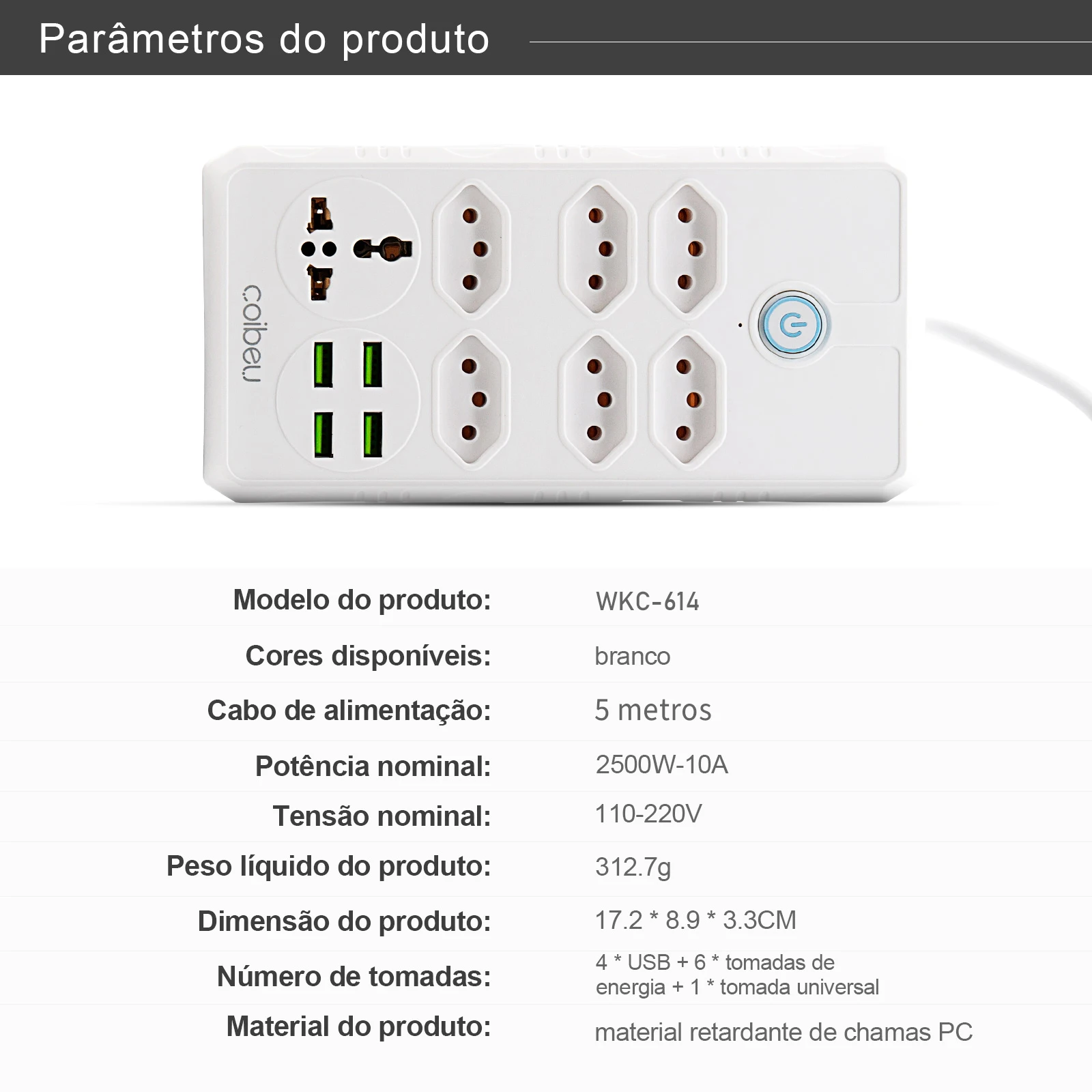 Line filter, extension socket, electrical extension, USB socket, extension socket, coibeu, USB electric extension 5 meters, 10A
