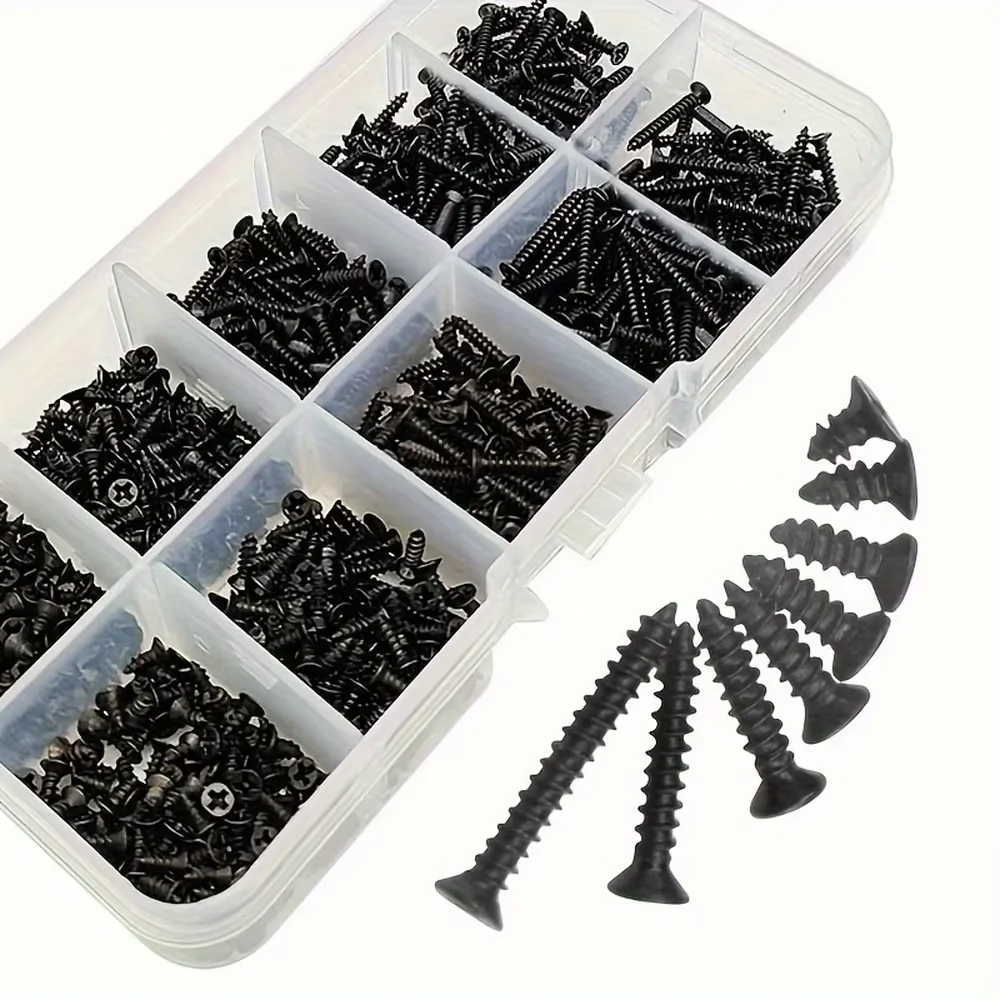 M2 black Flat Head Cross Carbon Steel Self-Tapping Screw 800Pcs, Suitable For Home Improvement, DIY Engineering, Electronic Prod