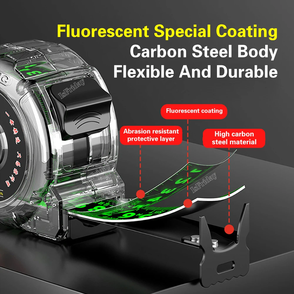 * Double-sided Fluorescent Ruler Tape:With a fluorescent coating on the scale,non-reflective, for improved legibility in all lighting conditions.