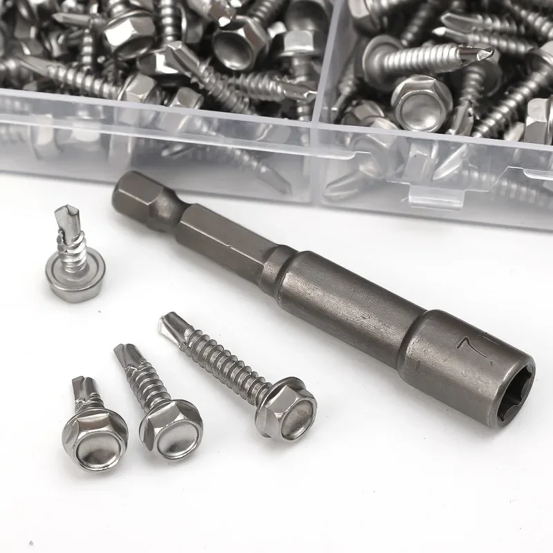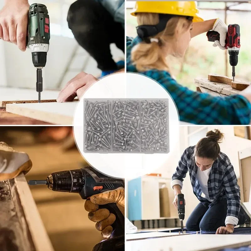 Features: High hardness, no fading, strong corrosion resistance, complete drilling, tapping, and tightening in one go, strong adhesion, saving time, effort, and labor. Deep threads, uniform pitch, and grain, effectively connect wood, iron, steel, and other materials. The blades are manufactured using advanced equipment, making them sharp, durable, sturdy, and labor-saving. Standard cross recessed blades ensure no slippage and a secure engagement.
