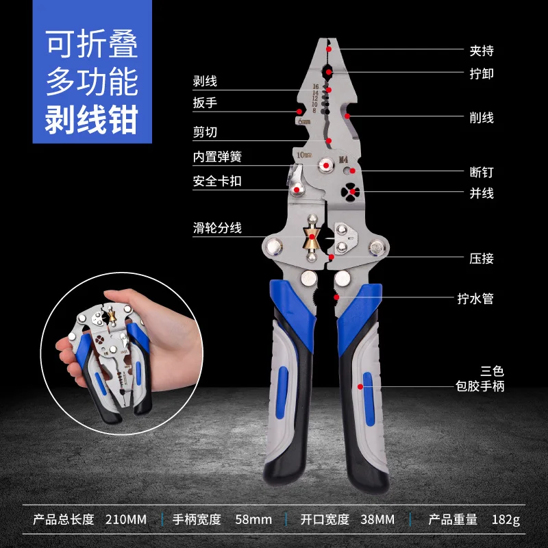 Stripping Pliers, Electrician Specific Wire Cutting Pliers, Multifunctional Handheld Branching and Crimping Pliers