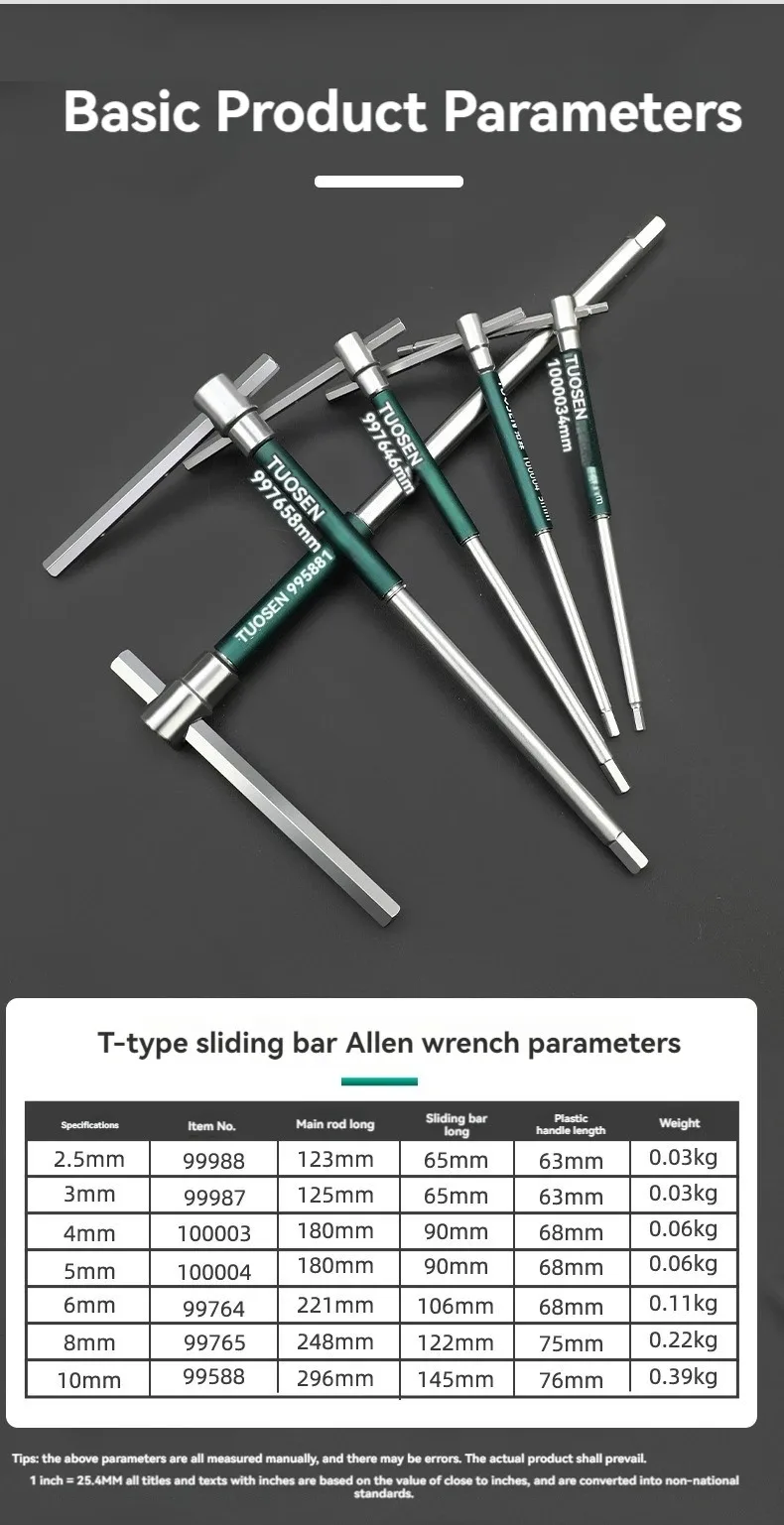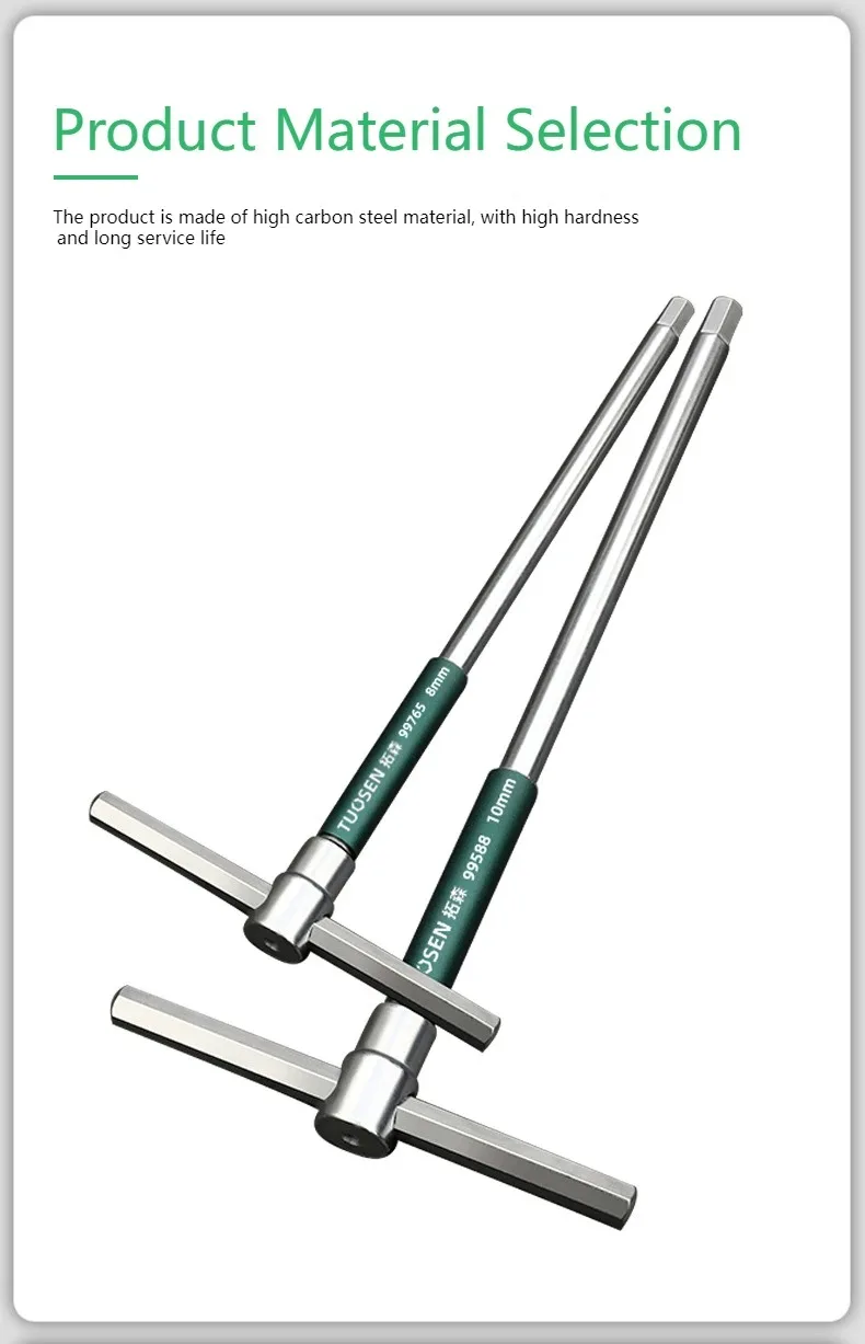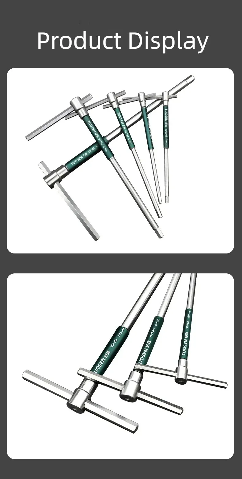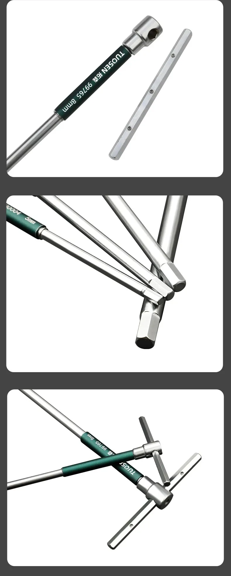 TUOSEN 2.5/3/4/5/6/8/10mm Torx Screwdriver T Type Allen Hex Wrench Chrome Spanner T-shaped Hand Tool Extended T-Socket Wrench