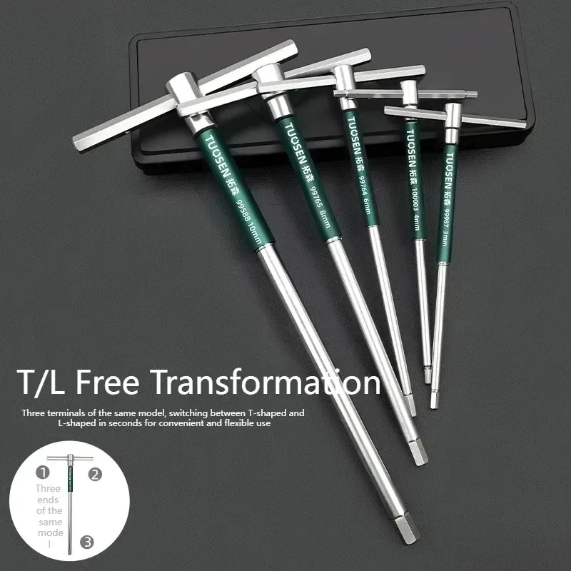 TUOSEN 2.5/3/4/5/6/8/10mm Torx Screwdriver T Type Allen Hex Wrench Chrome Spanner T-shaped Hand Tool Extended T-Socket Wrench