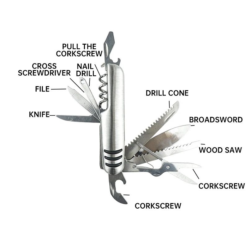 Utility Knife, 11-in-1 Pocket Knife with Screwdriver, Stainless Steel Bottle Opener, Wood Saw Scissors, Outdoor Emergency Tool