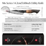 XINZUO 5.5″ utility knife, 67 – Layer Damascus Masterpiece, forged with super steel, offers unrivaled sharpness and durability.